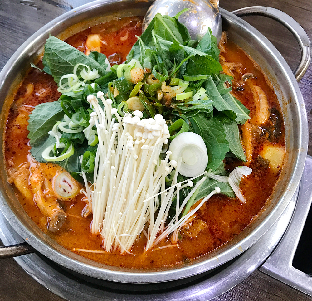 냄비에 푸짐하게 담겨 나온 감자탕~