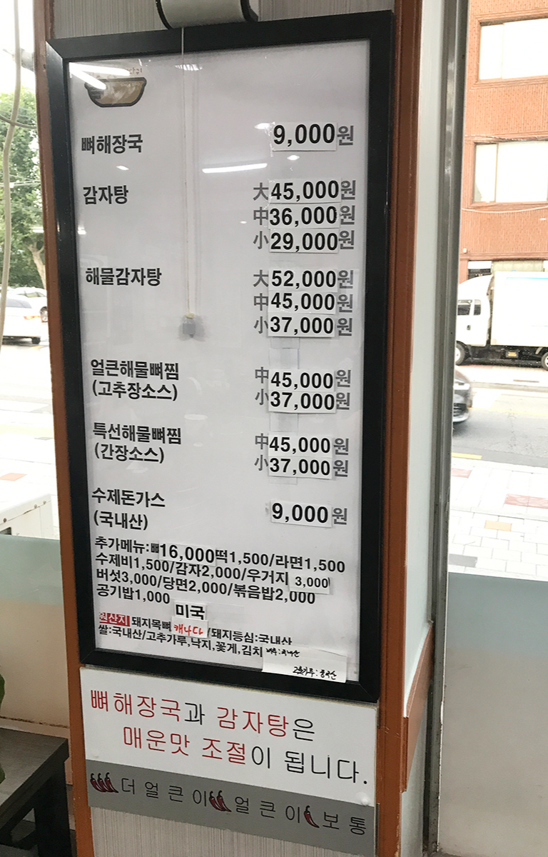 추대감네감자탕 가격 감자탕 말고도 해물감자탕, 해물뼈찜, 돈가스가 있어요.